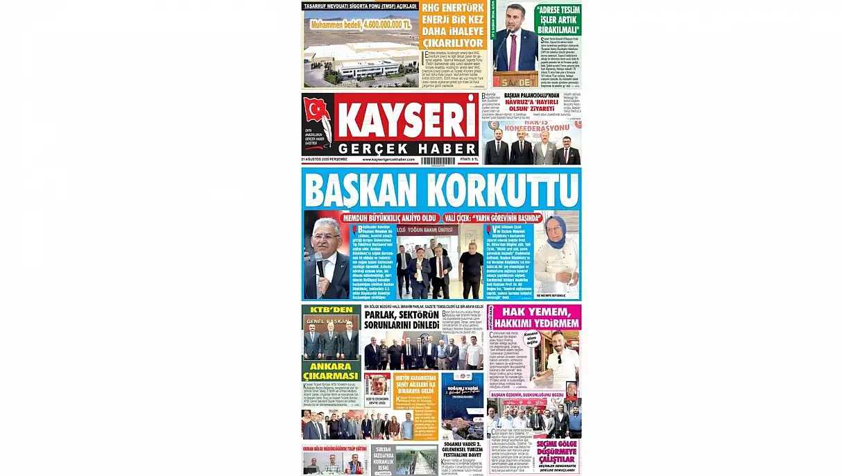 Gerçek Haber manşetinde ‘Başkan korkuttu’ ifadeleri ile Kayseri Büyükşehir Belediye Başkanı Memduh Büyükkılıç’a yer verdi. Kontrol amaçlı gittiği hastanede anjiyo olan Başkan Büyükkılıç’ın sağlık durumunun iyi olduğu ve tedavisinin yoğun bakım ünitesinde sürdüğü öğrenildi. Kayseri Valisi Gökmen Çiçek, Başkan Büyükkılıç’ın durumu ile ilgili ‘Hiçbir şeyi yok, yarın görevinin başında’ dedi.