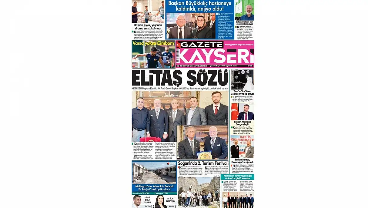- Kayseri Gazetelerinde 21 Ağustos Perşembe gündemi – Başkan Büyükkılıç, Mustafa Elitaş ve Soğanlı Festivali...
