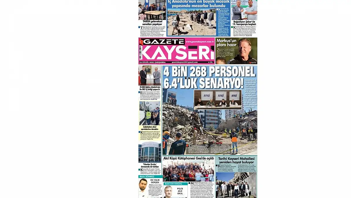 Gazete Kayseri manşetinde ‘4 bin 268 personel 6,4’lük senaryo’ başlığı ile kentte gerçekleştirilen deprem tatbikatına ter verdi. Kayseri’de 6,4 büyüklüğünde gerçekleşen olası deprem üzerinden üç şehir ortaklaşa tatbikat yaptı. Gerçeğini aratmayan tatbikatta 4 bin 268 personel görev yaparken, çarpıcı görüntüler ortaya çıktı.