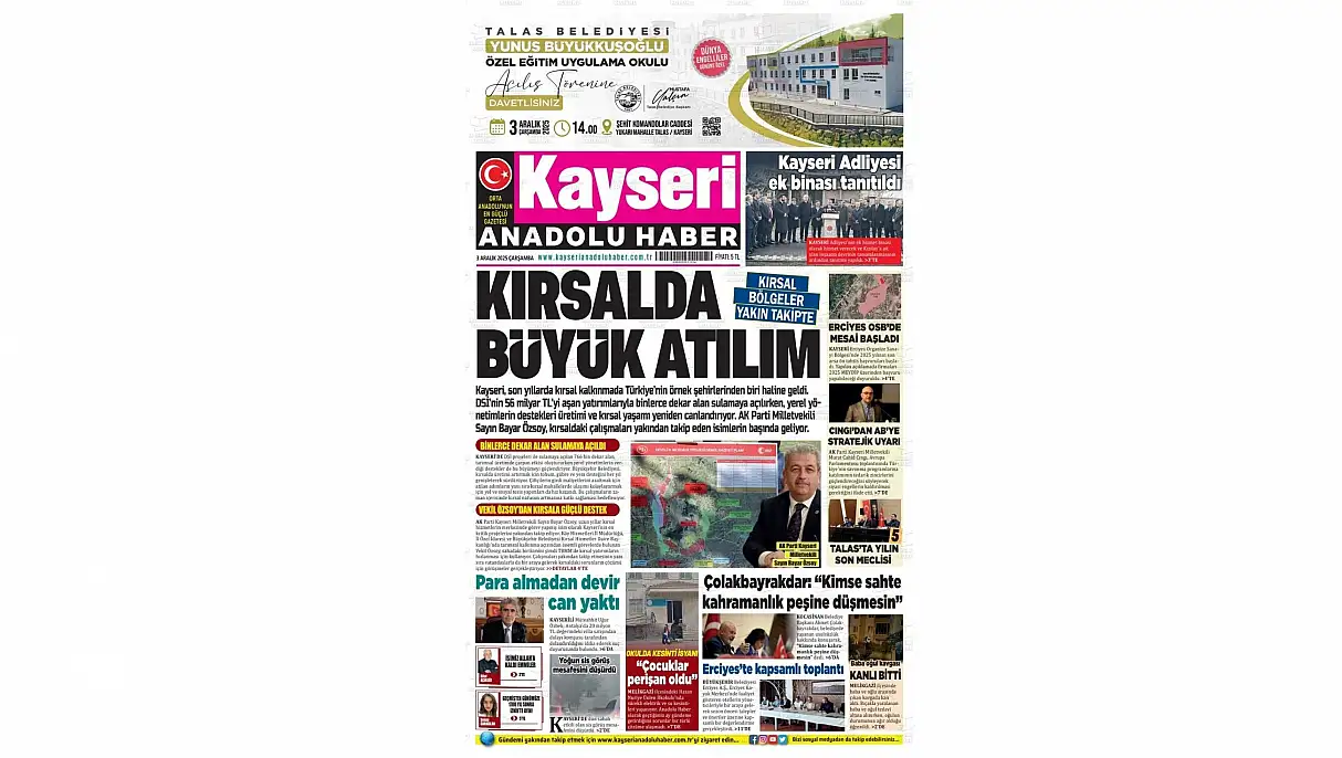 Kayseri gazetelerinde 3 Aralık manşeti ne oldu? İşte öne çıkan başlıklar!
