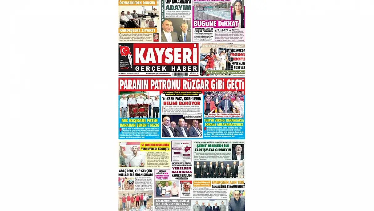 Kayseri yerel basında 30 Temmuz Çarşamba günü gazetelerde yer alan manşetleri sizin için derledik. Kayseri Anadolu Haber, Kayseri Gerçek Haber ve Gazete Kayseri tek bir manşete odaklandı: Merkez Bankası Başkanı Fatih Karahan... Detaylar Kayseri Anadolu Haber'de…
