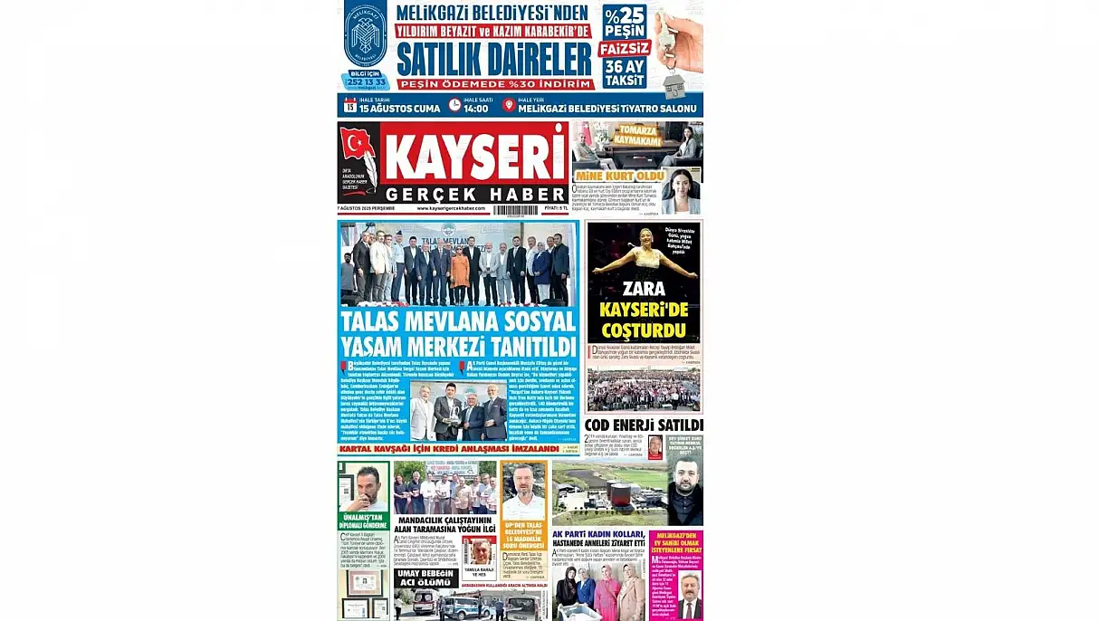 Kayseri yerel basında 7 Ağustos Perşembe günü gazetelerde yer alan manşetleri sizler için derledik. Kayseri Gerçek Haber, Kayseri Anadolu Haber ve Gazete Kayseri'nin manşetinde bugün kaza haberi, Kayseri'nin üvey evlat muamelesi görmesi ve Talas yaşam merkezi açılışı ön plana çıktı. Detaylar Kayseri Anadolu Haber'in Kayseri haberinde…