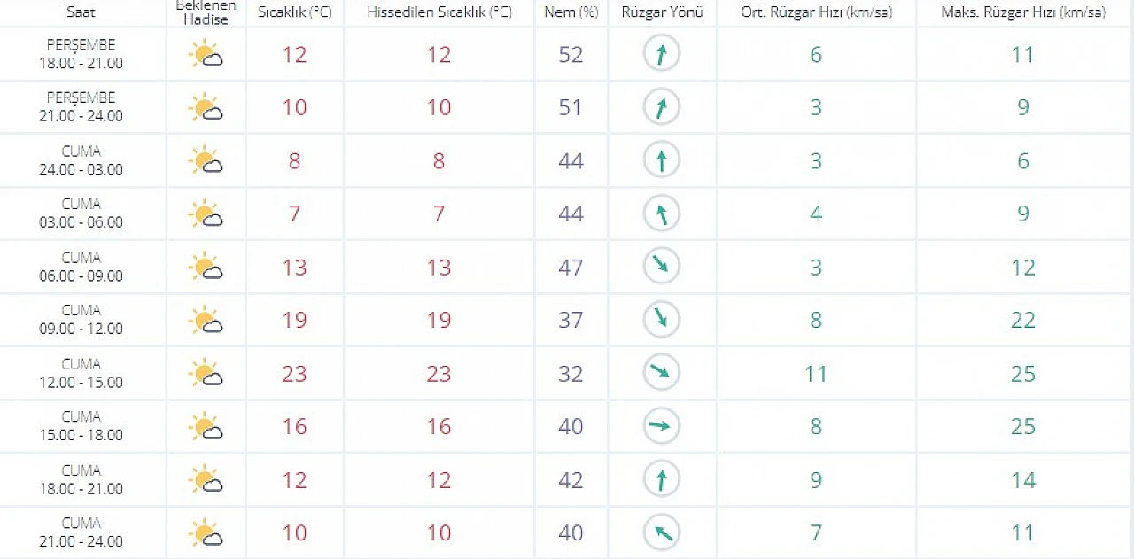 Hava sabah saatlerinde en soğuk derecesiyle vatandaşları karşılarken 12.00-15.00 saatleri arasında hava günün en yüksek sıcaklığına erişecek...