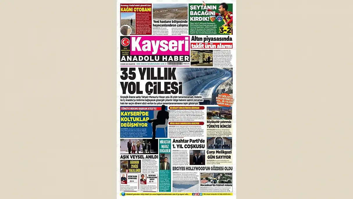Kayseri'de Yahyalı-Mansurlu-Kozan yolunun 35 yıldır tamamlanamaması, Kayseri Anadolu Haber Gazetesi'nde ‘’35 Yıllık Yol Çilesi'' başlığıyla manşet haber oldu. Haberde 2 bölgeyi birleştirecek güzergahın önemine ve halkın tepkisine yer verildi.