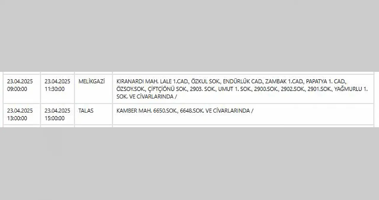 Kayseri'de bugün hangi mahallelerde elektrik kesintisi yaşanacak? - 23 Nisan 2025