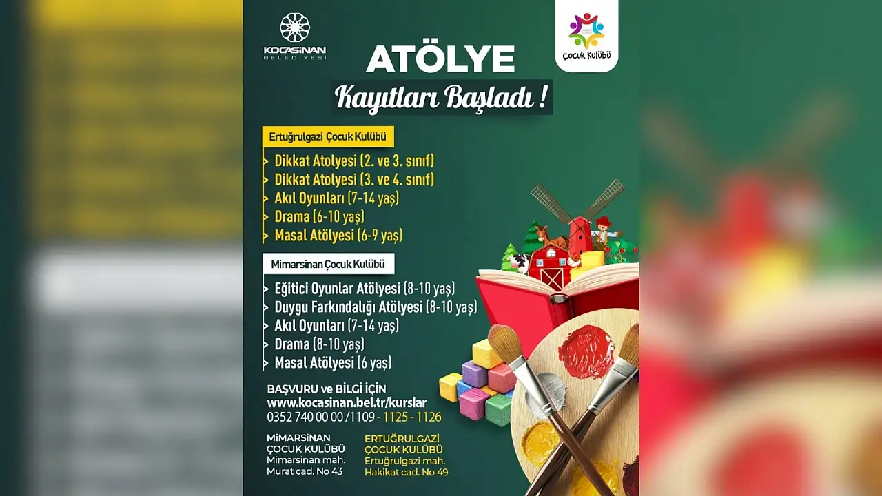 Kocasinan Belediyesi, ilçede yaşayan çocukların sosyal, zihinsel ve duygusal gelişimine katkı sağlamak amacıyla düzenlediği atölye çalışmalarının yeni dönem kayıtlarını başlattı. Detaylar Kayseri Anadolu Haber'de…