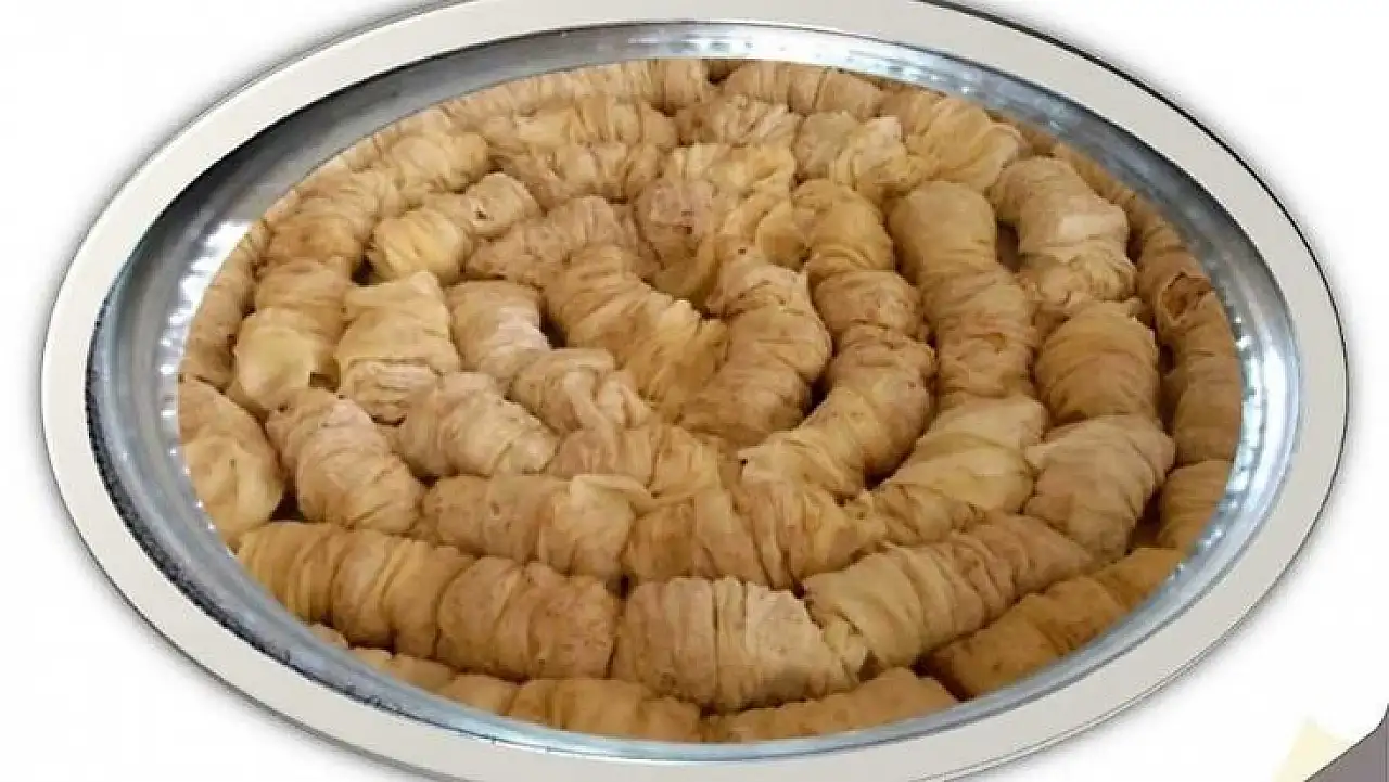 Burma şekli verin: Yufkayı iki ucundan büzerek uzun bir rulo haline getirin. Daha sonra spiral şeklinde kıvırarak tepsiye yerleştirin.