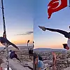 Nevşehir'de bayrak direğindeki hareketleri sosyal medyada gündem olan turist hakkında soruşturma başlatıldı.