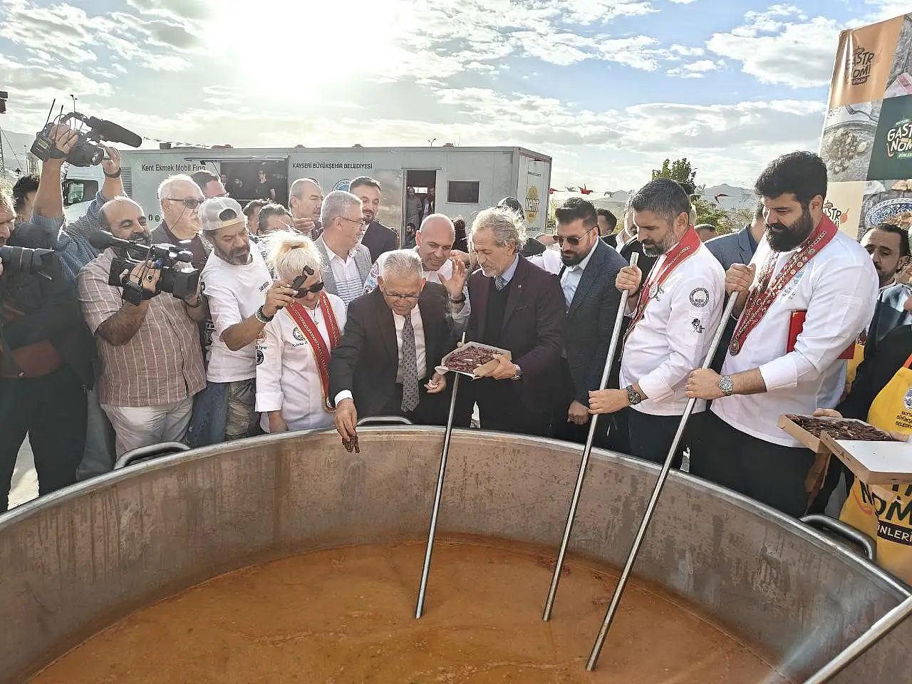 Bu yıl 3.'sü düzenlenen Kayseri Gastronomi Günleri, Recep Tayyip Erdoğan Millet Bahçesi'nde renkli görüntülerle başladı. Başkan Büyükkılıç'ın ev sahipliğinde gerçekleşen açılışta, vatandaşlara tam 1 ton pastırmalı Gömeç kuru fasulyesi ikram edildi. Detaylar Kayseri Anadolu Haber'de...