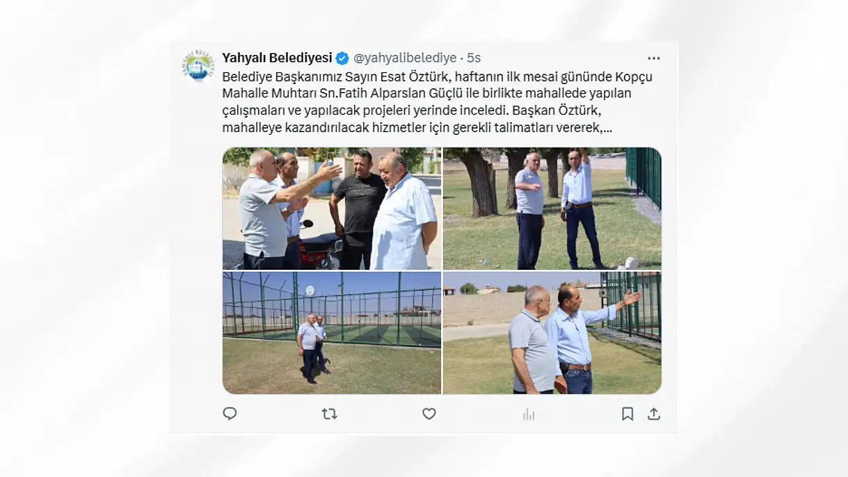 Yahyalı Belediye Başkan Esat Öztürk, haftanın ilk mesai gününde Kopçu Mahalle Muhtarı Fatih Alparslan Güçlü ile birlikte mahallede yapılan çalışmaları ve yapılacak projeleri yerinde inceledi. Başkan Öztürk, mahalleye kazandırılacak hizmetler için gerekli talimatları vererek, çalışmaların en kısa sürede hayata geçirileceğini belirtti