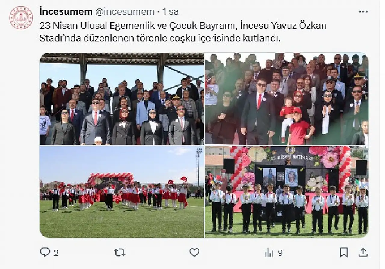 İncesu'da 23 Nisan Ulusal Egemenlik ve Çocuk Bayramı, İncesu Yavuz Özkan Stadı’nda düzenlenen törenle coşku içerisinde kutlandı.