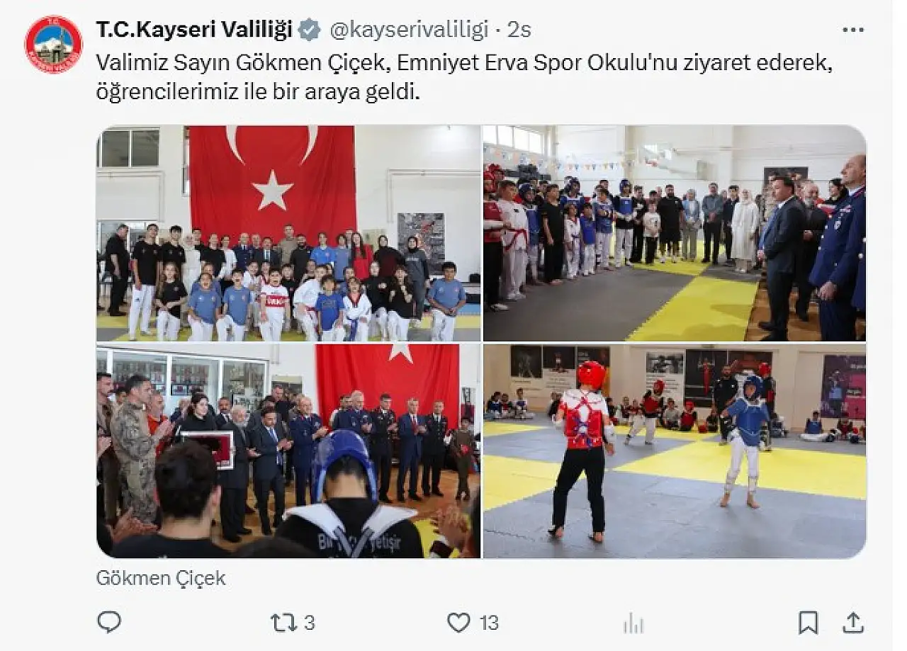 Kayseri Valisi Gökmen Çiçek, Emniyet Erva Spor Okulu'nu ziyaret etti.