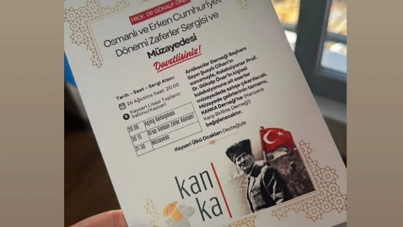 Prof. Dr. Gökalp Öner Kayseri Ülkü Ocaklarının desteği ile yeni bir müzayedeye hazırlanıyor. ‘Osmanlı ve Erken Cumhuriyet Dönemi Zaferler Sergisi ve Müzayedesi’nden elde edilen tüm gelir KANKA’ya (Kansere Karşı Birlikte Derneği) bağışlanacak.