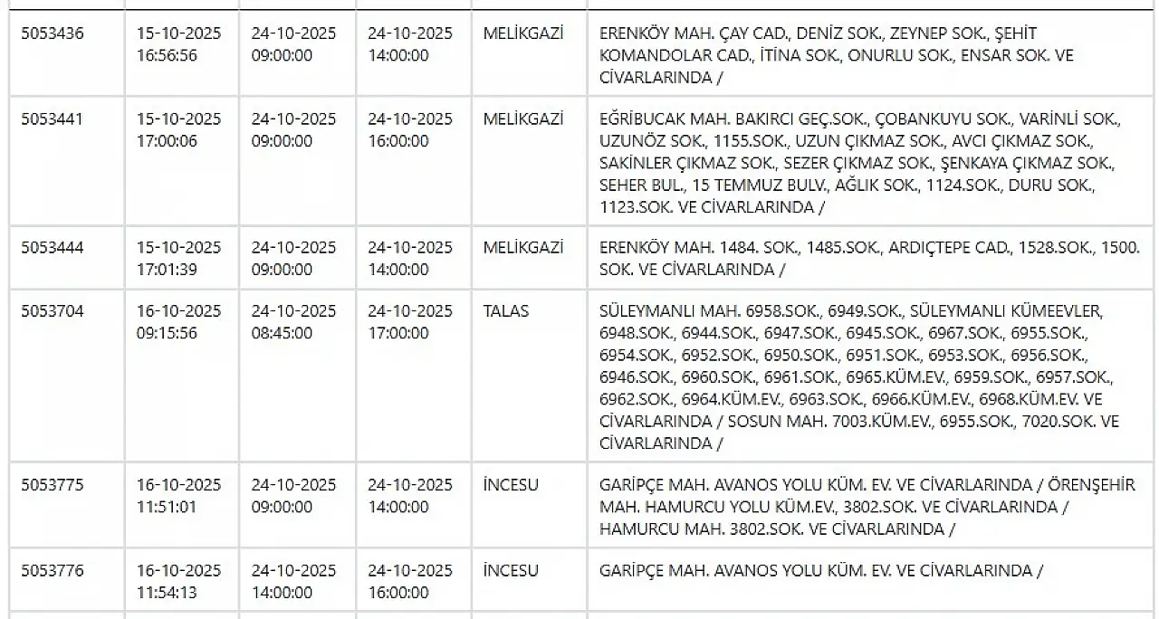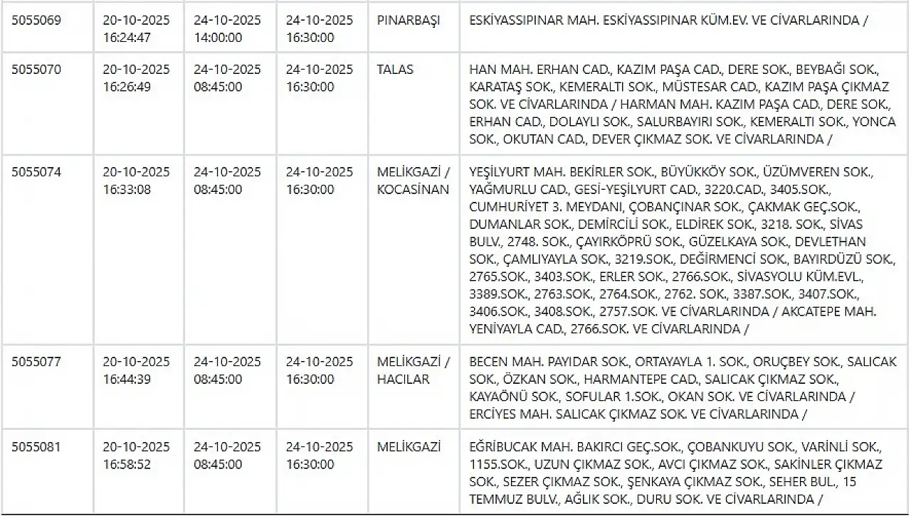 Kayseri'nin yarın 11 ilçesinde elektrik kesintileri yaşanacak! 24 Ekim 2025