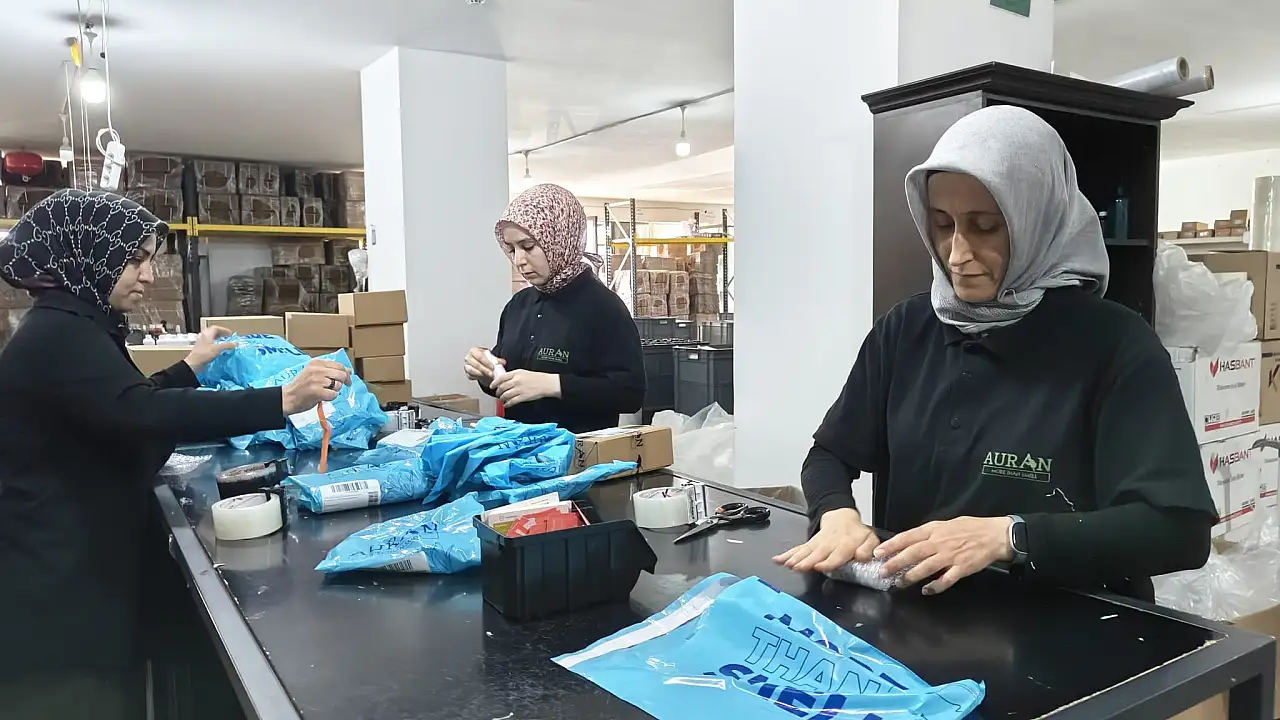 Auran Kozmetik’te üretim personeli olarak çalışan Döndü Erkoç, 'Auran ile 3 yıl önce tanıştım. 3 tane çocuğum var. Ben küçük çocuğumu gezdirirken denk gelmişti. Bizim apartmanımızın altına açılmıştı. Fatma hanımın teşviki ile işe başladım. ‘Yapabilirsin, biz seninle birlikte bu yolda yürüyebiliriz’ diyerek beni teşvik etmişti. Daha sonra da kurucumuz Abdullah bey ile tanıştık. Hayatıma bambaşka bir kapı açıldı. Abdullah beyin heyecanı da her şekilde hepimizi sardı. Bu şekilde bir işe başlamış olduk. İlk elemanları olarak her şeyi onlardan öğrendim. Burası aynı zamanda benim de ilk iş yerim. İlk defa çalışmaya yönlendirildim burası ile. Benim 4 yaşında çocuğum vardı ve nasıl yapacağıma dair de kaygılarım vardı. Bu şekilde başladım. Yaptıkça, ürettikçe hoşumuza gitti. Daha çok sevdik ve daha çok bağlandık. Auran denildiği zaman bizim için bambaşka bir dünya oldu. Üretmek çok güzel. Başarmak ve bu alanda yürümek, bir aile olup iş anlamında da başarıyı kazanmak bence her kadının tatması gereken bir duygu' dedi.