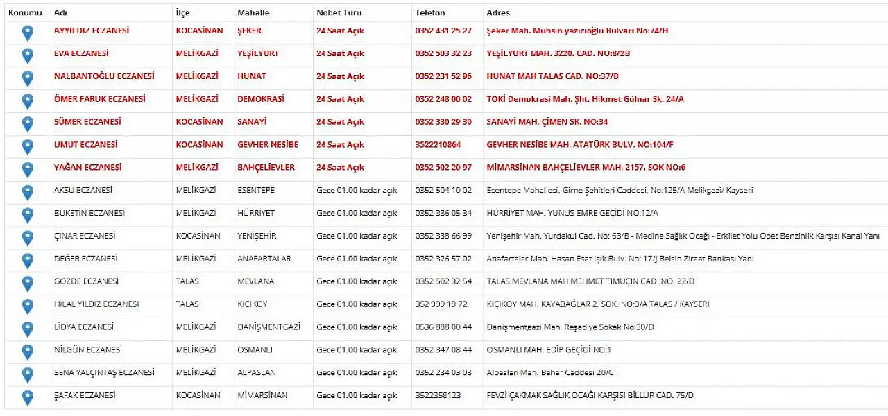 Kayseri nöbetçi eczaneler (10 Mayıs 2025 Cumartesi)