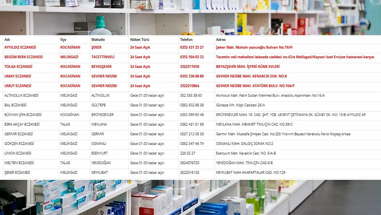 Kayseri nöbetçi eczaneler - 16 Şubat 2026