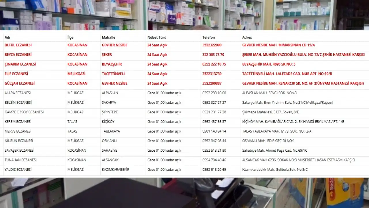 Kayseri nöbetçi eczaneler (30 Aralık Salı)