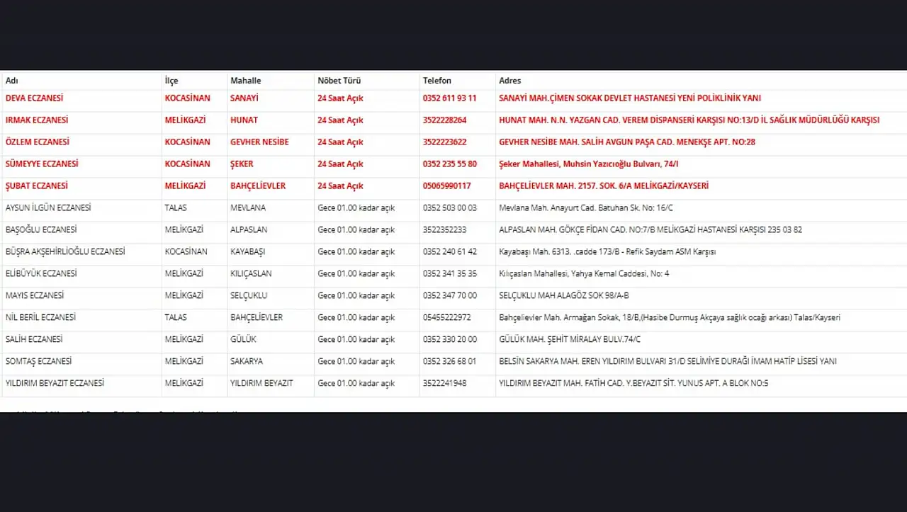 Kayseri nöbetçi eczaneler (5 Ocak)