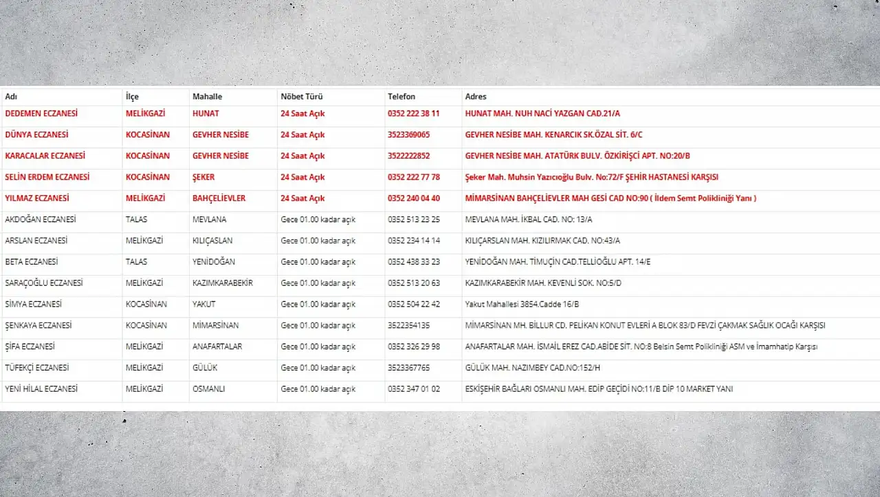 Kayseri nöbetçi eczaneler: 9 Aralık!