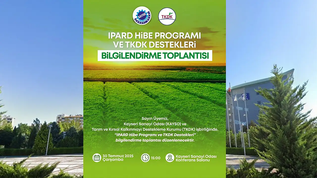 Kayseri Sanayi Odası ve Tarım ve Kalkınmayı Destekleme Kurumu iş birliği içerisinde programlar ve destekler hakkında bilgilendirme toplantısı düzenlenecek. Detaylar Kayseri Anadolu Haber'de...
