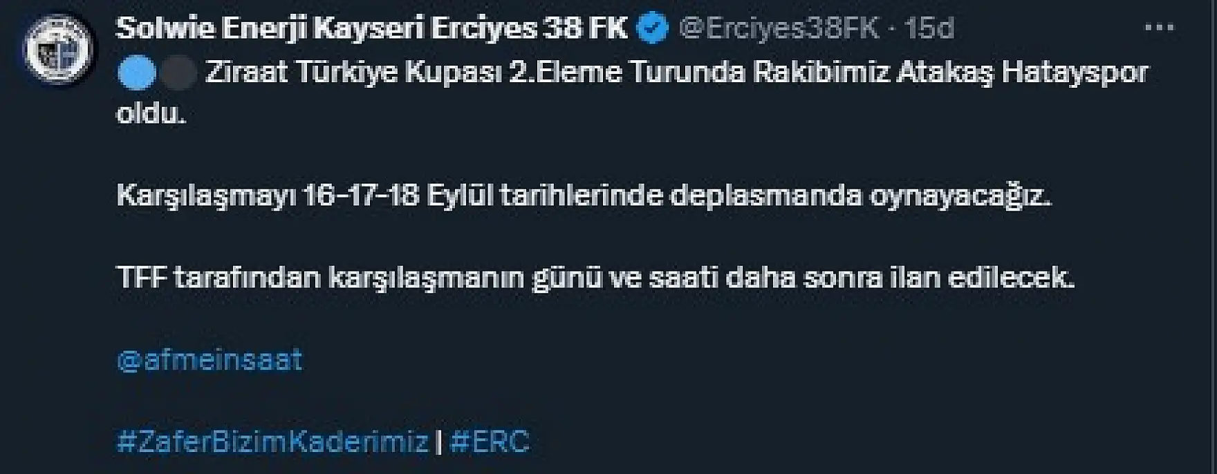 Kayseri yeni eğitim öğretim yılına bugün merhaba derken okul ziyareti gerçekleştiren protokol de sosyal medya hesaplarından bu anları paylaşmayı ihmal etmedi. Sabah saatlerinde İzmir'de meydana gelen silahlı saldırı sonucunda şehit olan 2 polis Türkiye'yi hüzne boğdu. Kayseri'den de taziye mesajları yayımlandı. Son olarak Erciyes FK rakibinin Hatayspor olduğu ve deplasman tarihi sporseverlere duyuruldu. Detaylar haberimizde....