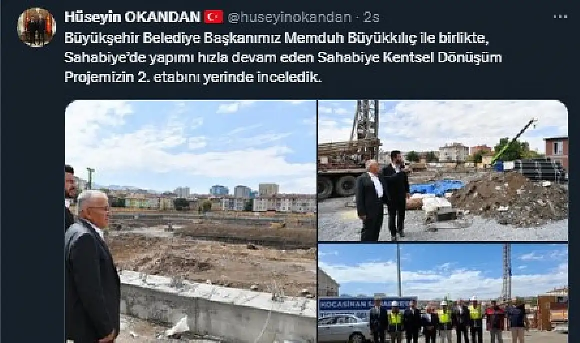 Kayseri Büyükşehir Belediye Başkanı Memduh Büyükkılıç ile Okandan, Sahabiye’de yapımı hızla devam eden Sahabiye Kentsel Dönüşüm Projesinin 2. etabını yerinde inceledi