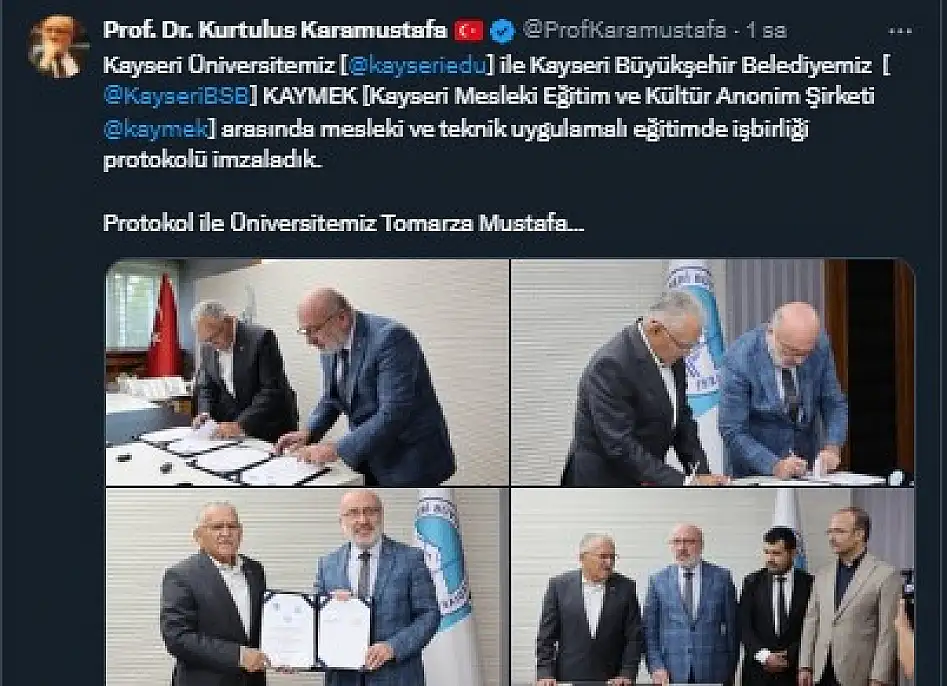 Haberler Güncel Kayseri sosyal medya hesaplarında neler paylaşıldı? İşte öne çıkan gündemler! Kayseri sosyal medya hesaplarında neler paylaşıldı? İşte öne çıkan gündemler! Kayseri sosyal medya hesaplarında öne çıkan paylaşımları sizler için derledik. Detaylar Kayseri Anadolu Haber'de... kayseri sosyal medya PAYLAŞ 29.08.2025 16:18 Güncelleme: 29.08.2025 16:18 Hilal TekeoğluMuhabir TAKİP ET 5 7 PAYLAŞ KAYÜ Rektörü Prof. Dr. Kurtuluş KaramustafaKAYÜ Rektörü Prof. Dr. Kurtuluş Karamustafa sosyal medya hesabından KAYÜ ile KAYMEK arasıdna iş birliği protokolü imzaladıklarını duyurdu.