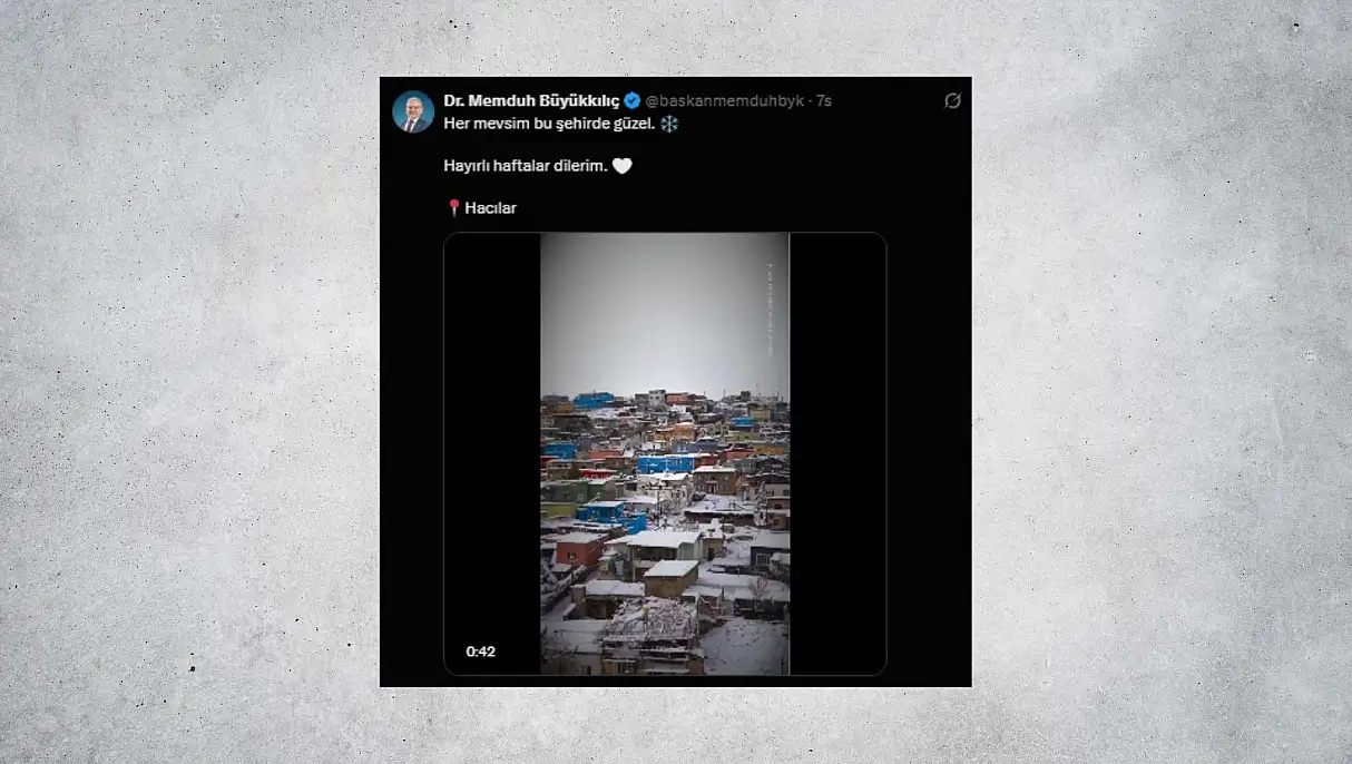Başkan Büyükkılıç sosyal medya hesabından kar yağışının etkili olduğu Hacılar ilçesini ''Her mevsim bu şehirde güzel. Hayırlı haftalar dilerim.'' ifadeleriyle paylaştı.