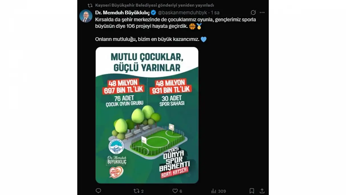 ‘Kırsalda da şehir merkezinde de çocuklarımız oyunla, gençlerimiz sporla büyüsün diye 106 projeyi hayata geçirdik. Onların mutluluğu, bizim en büyük kazancımız.’
