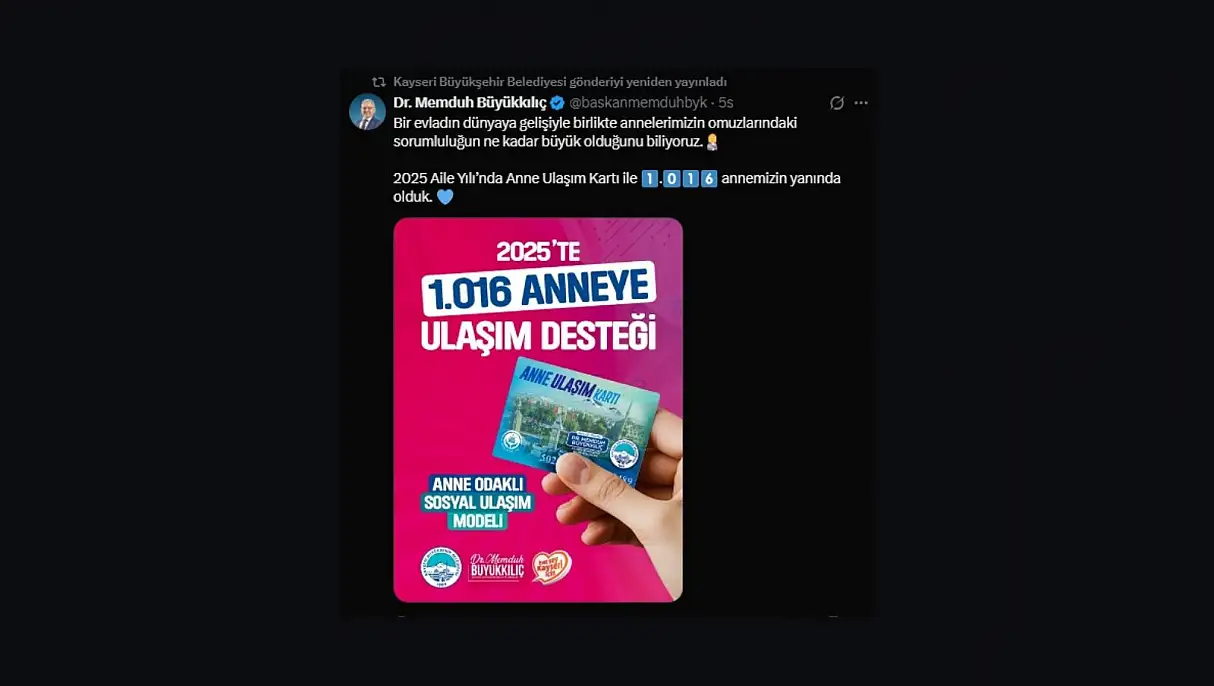 ‘Bir evladın dünyaya gelişiyle birlikte annelerimizin omuzlarındaki sorumluluğun ne kadar büyük olduğunu biliyoruz. 2025 Aile Yılı’nda Anne Ulaşım Kartı ile 1016 annemizin yanında olduk.’