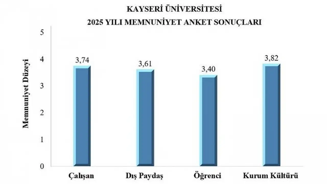 Kayseri Üniversitesi tarafından 2025 yılı sonunda ilgi gruplarına yönelik gerçekleştirilen memnuniyet anketlerinin sonuçları kamuoyuyla paylaşıldı.