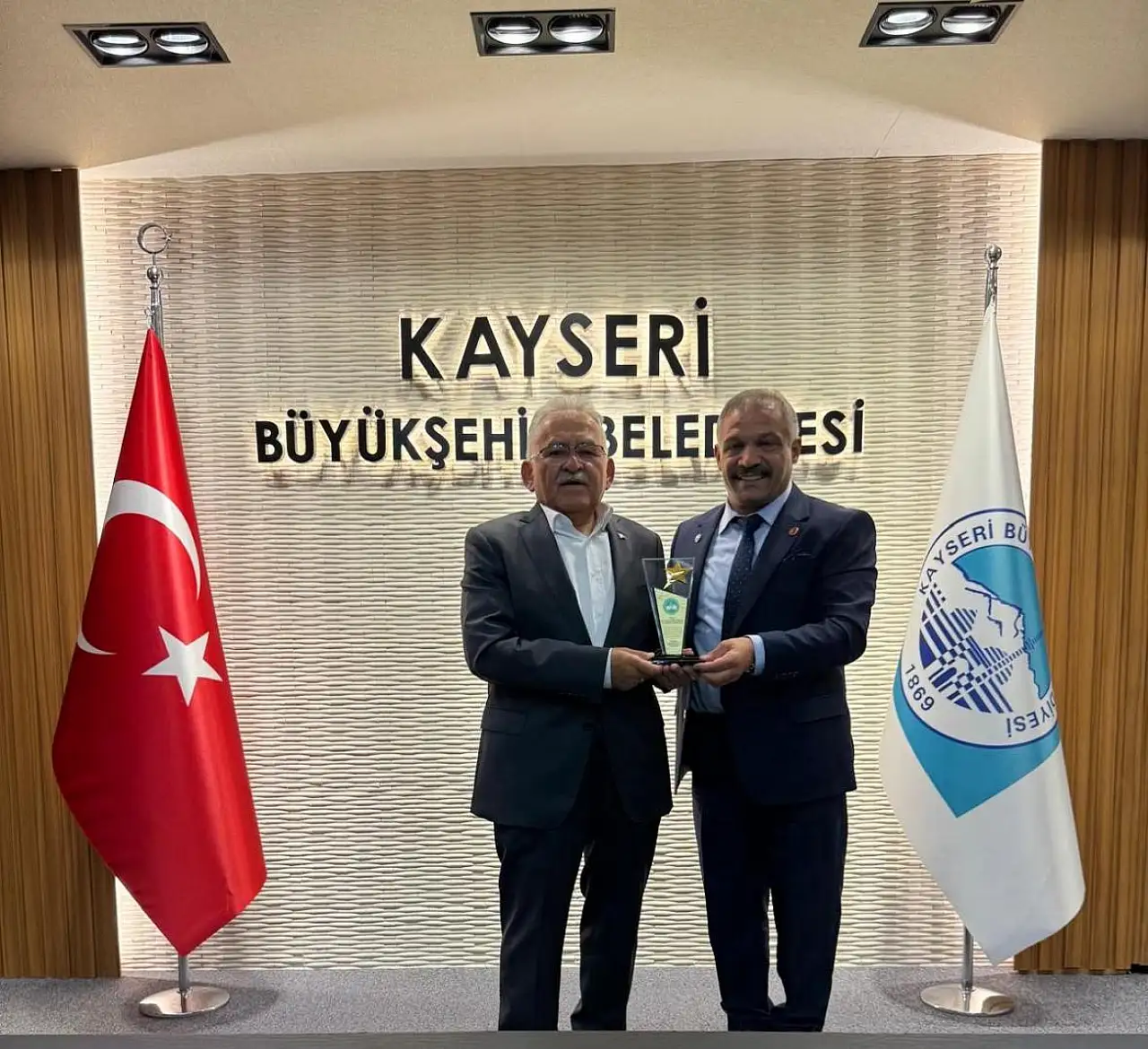 AK-İB Yönetim Kurulu Başkanı iş insanı Ali Hızar ve yardımcısı Hacı Mehmet Batagan ile heyet üyeleri daha sonra Kayseri Büyükşehir Belediye Başkanı Dr. Memduh Büyükkılıç’ı makamında ziyaret etti. Başkan Dr. Memduh Büyükkılıç, Avrupa Kayserili İşverenler Birliği oluşumunun yapılanmasından dolayı emeği geçenleri tebrik ederek; ‘Avrupa da yılların birikimi omuzlarınızda ve bu sorumlulukla böyle bir sivil toplum örgütünü güçlü şekilde kurmanızdan dolayı tebrik ederim. Sizin oralarda güçlü olmanız bizleri de sevindirir. Biz her türlü konuda işbirliğine hazırız, elimizden ne gelirse yaparız inşallah. Sizin burada bulunduğunuz sürece de rahat etmeniz, karşılaşabileceğiniz sorunlar olursa onları da en hızlı şekilde çözmeye yardımcı olmaya belediye olarak da hazırız’ diye konuştu.