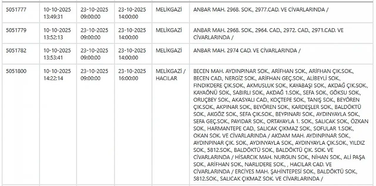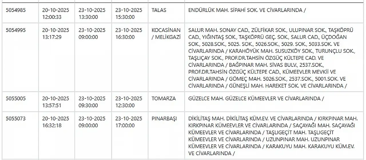 - Kayseri'ye flaş uyarı... 23 Ekim 2025 Perşembe günü o ilçelerde elektrik kesintisi yaşanacak!