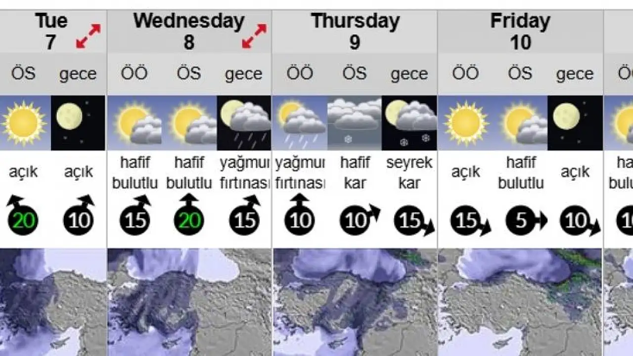 Meteoroloji tahminlerine göre, Cuma gününden itibaren hava açılacak ve hafta sonu boyunca hafif bulutlu bir gökyüzü bekleniyor. Ancak sıcaklıkların düşmeye devam etmesiyle birlikte, gece saatlerinde sıcaklıkların sıfırın altına inmesi tahmin ediliyor.