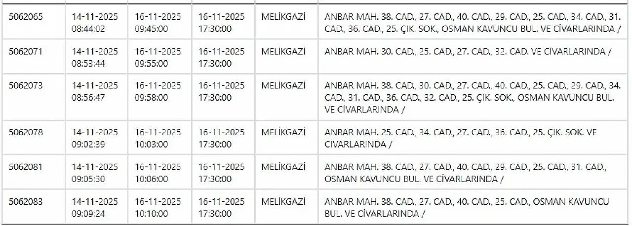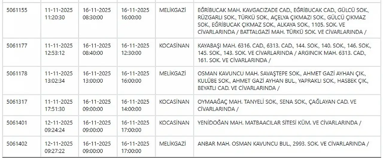 Dikkat! KCETAŞ uyardı- Yarın (16 Kasım 2025) birçok mahallede elektrik kesintisi yaşanacak! Detaylar Kayseri Anadolu Haber'de…