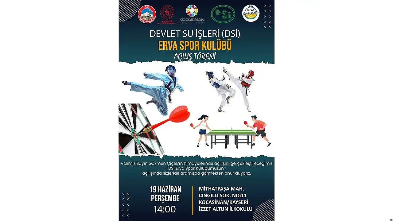 Kayseri’de gençlerin sportif alanda daha aktif ve bilinçli bireyler olarak yetişmesine katkı sağlayacak bir merkez daha açılıyor. Devlet Su İşleri (DSİ) iş birliğiyle hayata geçirilen “DSİ Erva Spor Kulübü”, 19 Haziran Perşembe günü (yarın) saat 14.00’te kapılarını açıyor.