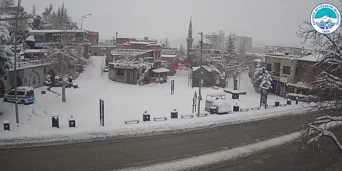 Kayseri yeniden beyaz örtüye büründü: İşte şehir kameralarına yansıyan görüntüler!