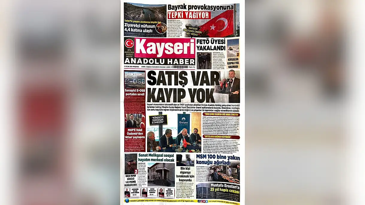 Gazete bugün manşetine ‘’Satış Var Kayıp Yok'' başlığı ile çıktı. TMSF tarafından yönetilen Erciyes Anadolu Holding'e ilişkin açıklamalar gazetenin ilk sayfasında geniş yer buldu. Erciyes Anadolu Holding'in ekonomik göstergelerinin güçlenerek büyüdüğünün altı çizildi.