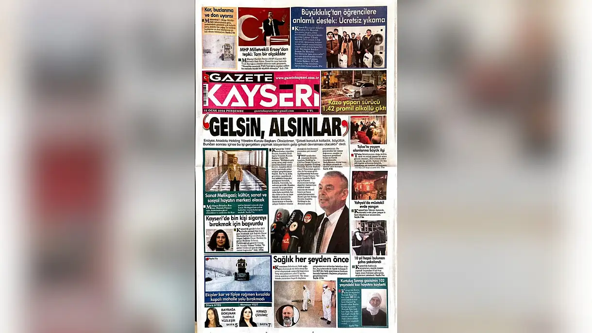 Gazete bugün manşetine ‘’Gelsin, Alsınlar'' başlığı ile çıktı. Gazetenin ilk sayfasında Erciyes Anadolu Holding Yönetimi Kurulu Başkanı Yusuf Öksüzömer'in açıklamaları geniş yer buldu. Erciyes Anadolu Holding'in gerçekleştirilen şirket satışlarına rağmen güçlü konumunu koruduğu belirtildil
