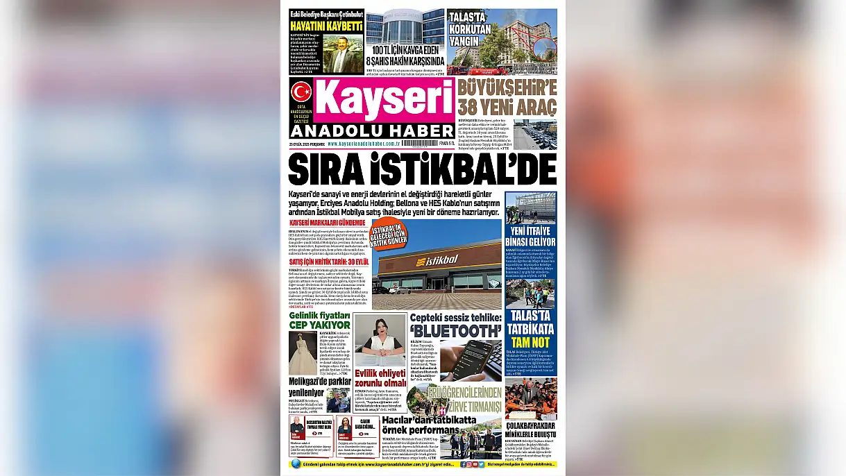Gazete bugün manşetinde Kayseri'nin mobilya devi İstikbal Mobilya'nın TMSF tarafından olası satışını ele aldı. Kayseri ekonomisinde mobilya üretiminin ve firmalarının önemine yer verdi.