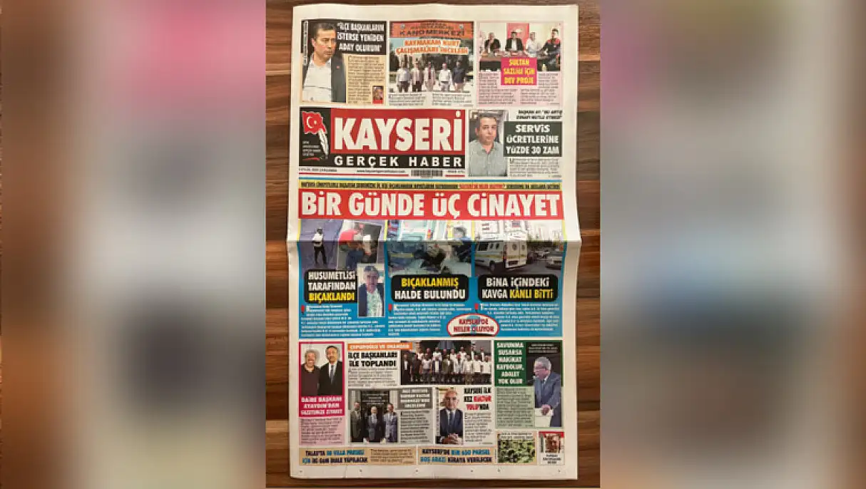 Geçtiğimiz gün Kayseri’de meydana gelen 3 cinayet kamuoyunda yankı uyandırdı. Kayseri Gerçek Haber ‘’Haftaya cinayetlerle başlayan şehrimizde 3 kişi bıçaklanarak hayatını kaybederken ‘Kayseri’de neler oluyor?’ sorusunu da akıllara getirdi.’ ifadeleriyle ‘’Bir Günde Üç Cinayet’’ manşetini kamuoyuna sundu.