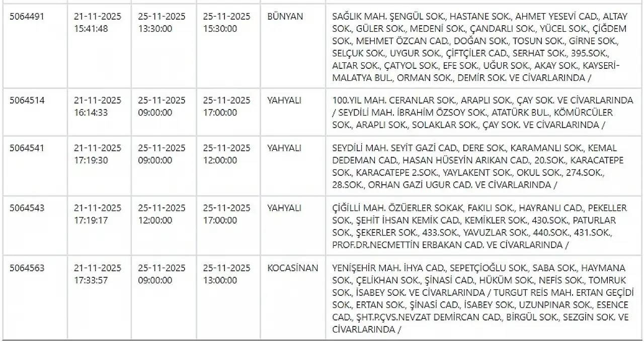 - Kayseri yine elektriksiz kalacak: İşte 25 kasım 2025 elektrik kesintisi saatleri ve bölgeler!