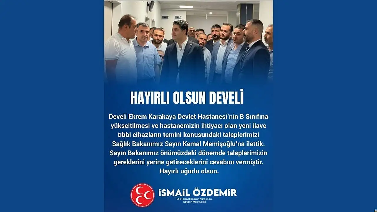 MHP Kayseri Milletvekili İsmail Özdemir'in açıkladığı gelişme sağlık hizmetlerinde yeni bir dönemi başlatıyor. Devlet Hastanesi'nde hangi yenilikler hayata geçecek? Detaylar Kayseri Anadolu Haber'de...