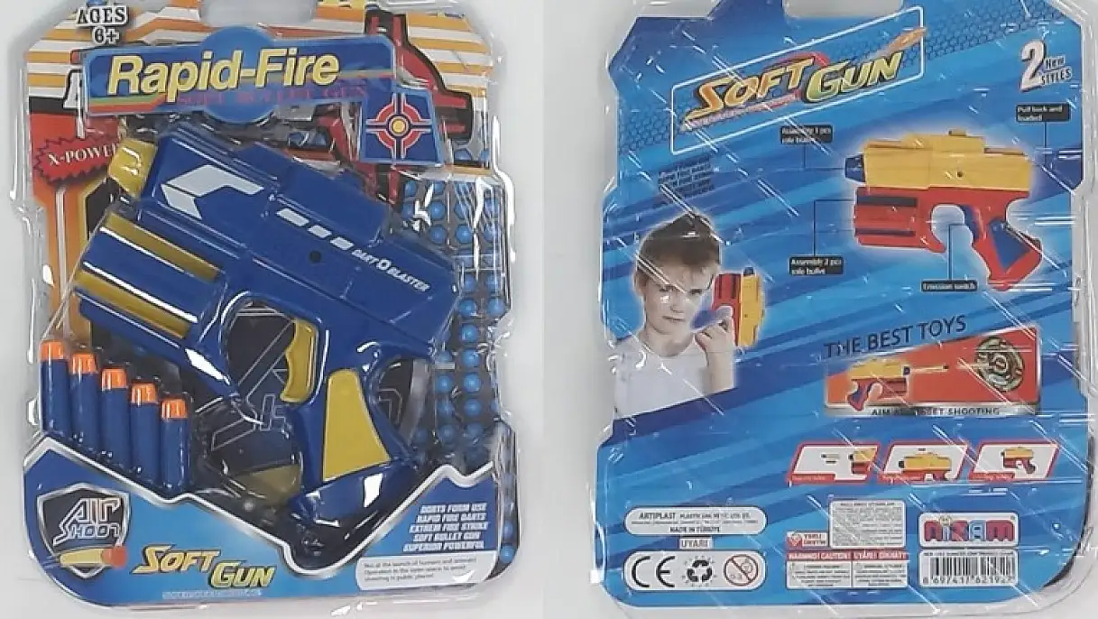 Nizam Oyuncak Pazarlama San. Ve Dış Tic.Ltd.Şti. Nzm-192 (Barkod No:8697417621922) çubuk atan tabancada yaralanma riski tespit edildi.