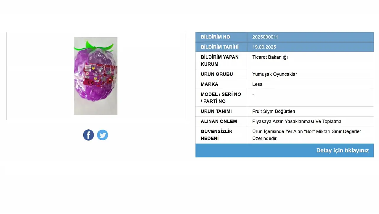 Güvensiz Ürün Bilgi Sistemi (GÜBİS) üzerinden kamuoyunu bilgilendiren Ticaret Bakanlığı iki oyuncak için satış yasağı getirdi.