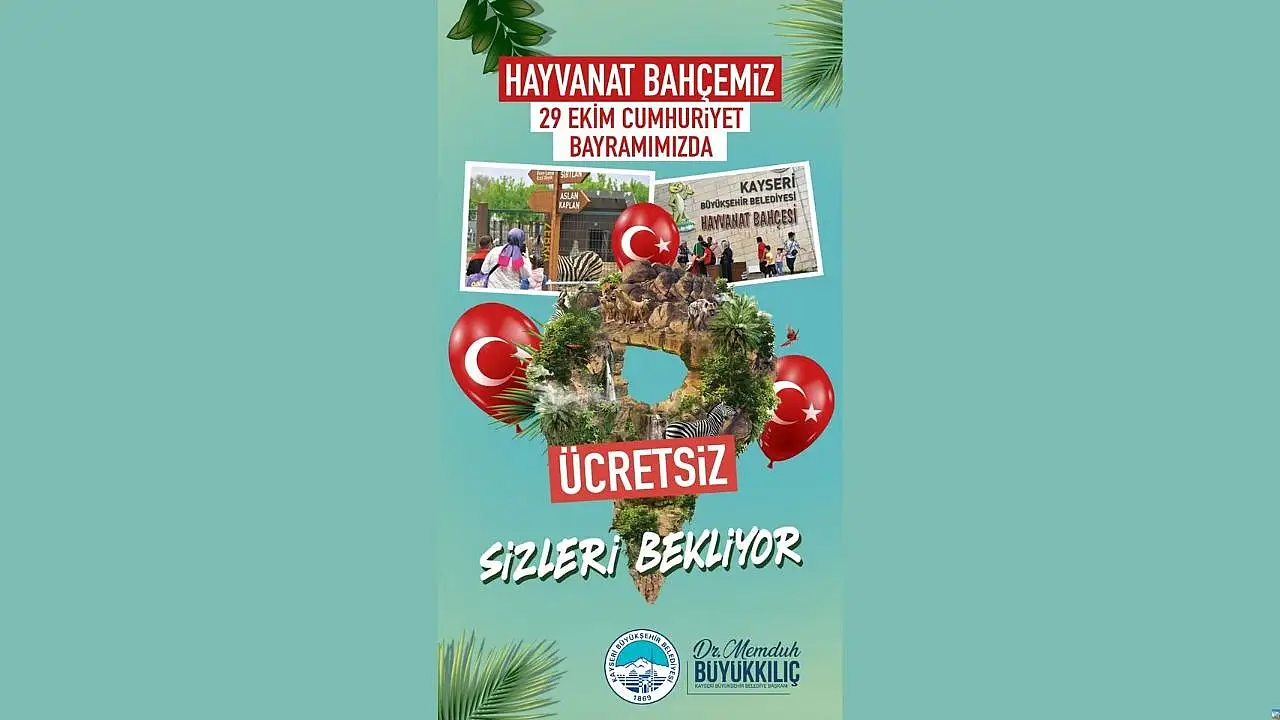 Belediye Başkanı Memduh Büyükkılıç’ın talimatıyla, Kayseri Hayvanat Bahçesi 29 Ekim Pazar günü ücretsiz olarak ziyarete açılacak. Ailelerin ve çocukların doğayla iç içe vakit geçirebileceği bu özel gün, Cumhuriyet coşkusunu daha da renklendirecek.
