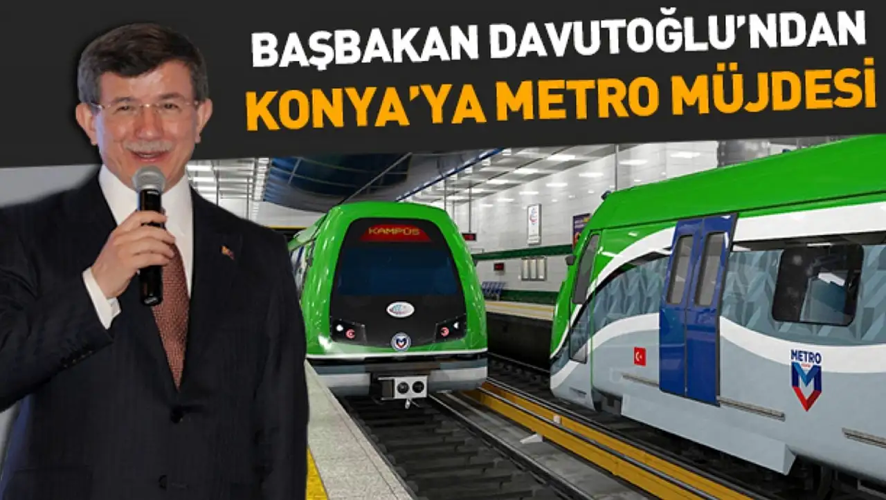 Dönemin başbakanı Ahmet Davutoğlu, 27 Nisan 2015 tarihinde Konya metrosunu müjdelemiş ve 2020 yılında tamamlanacağını söylemişti. Konya'ya yapılacak ve 3 milyar liraya mal olacak 45 kilometrelik metronun müjdesini o dönemde veren Davutoğlu, şu ifadeleri kullanmıştı: ‘’Bu proje çok önemli. Güzergah öyle belirlendi ki 5 üniversite birbirine bağlanıyor. Hastaneler birbirine bağlanıyor. Temel devlet kurumları, üniversiteler, bilim merkezleri birbirlerine irtibatlanıyor. İlk planlamalara göre 2020 yılında bitmesi hedefleniyor. Buradan ifade ediyorum, 2018 yılı Şebi-i Arus’unda ilk aşama bitmeli. 2020’ye kadar da toplamda 45 kilometreye kadar olan hat açılacak. Entegre raylı sistemi Büyükşehir Belediyemiz yapacak ve bununla birlikte raylı sistemle Konya'da ulaşılmayacak yer kalmayacak.’’