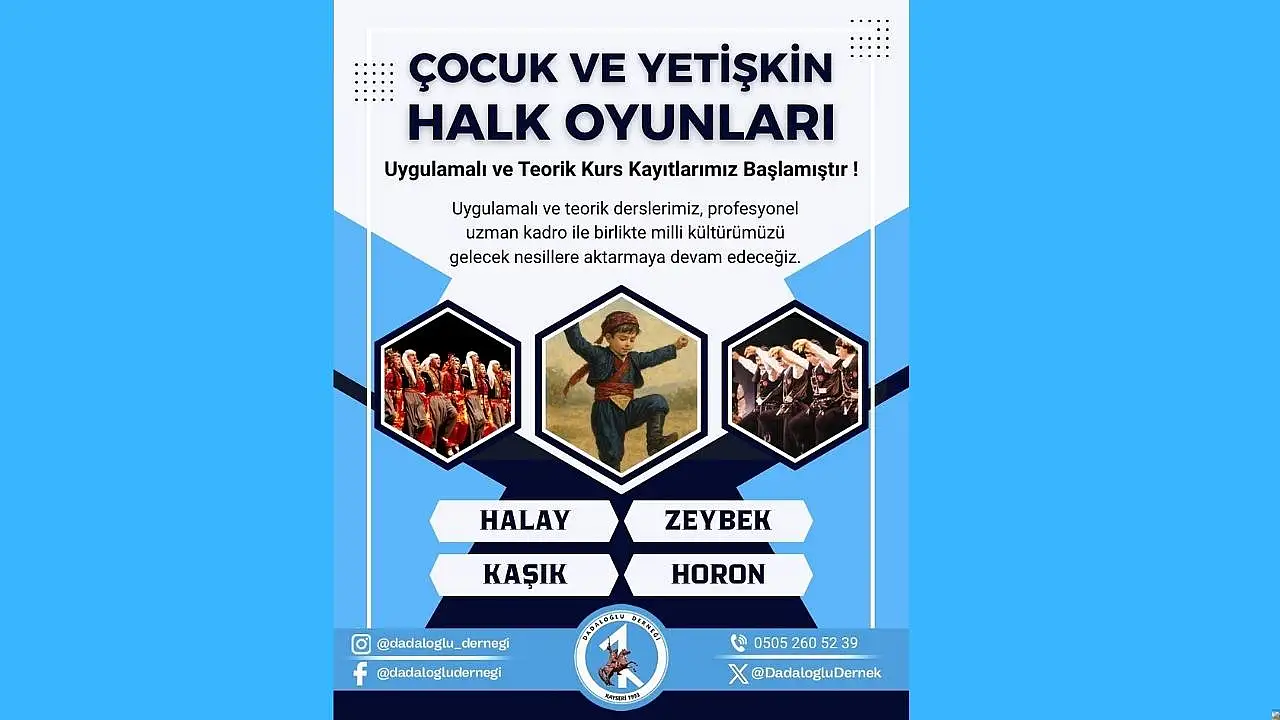 Kayıtların devam ettiği halk oyunları kursları hakkında detaylı bilgiye derneğin sosyal medya hesapları ve iletişim numaralarından ulaşılabiliyor.