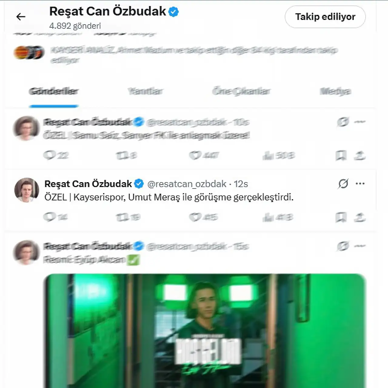 Gazeteci Yağız Sabuncuoğlu’nun ekibinden Reşat Can Burak, Kayserispor’un Eyüpspor’dan Umut Meraş ile görüşme gerçekleştirdiğini şu ifadelerle duyurdu: “Özel | Kayserispor, Umut Meraş ile görüşme gerçekleştirdi.” Bu sezon 7 kez Eyüpspor forması giyen Umut, Sarıyerde başlayan futbolculuk kariyerinde Boluspor, Bursaspor, Le Havre, Beşiktaş da bulunuyor. 30 yaşındaki tecrübeli futbolcu, aynı zamanda sol stoper, saol kanat ve sağ bekte de oynayabiliyor.